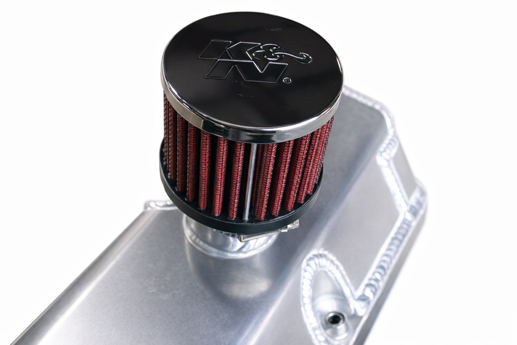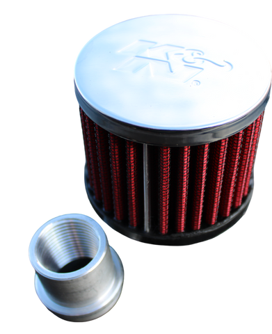 The K103 Breather kit allows you to turn any -12 AN Breather on a valve cover in to a traditional standpipe style breather. This kit includes the O-ring to seal to your valve cover, an aluminum adapter fitting, and a K&N Breather.